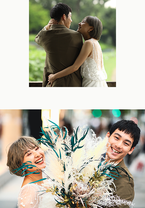 お二人らしさがにじみ出る、自然体の表情を収めます。